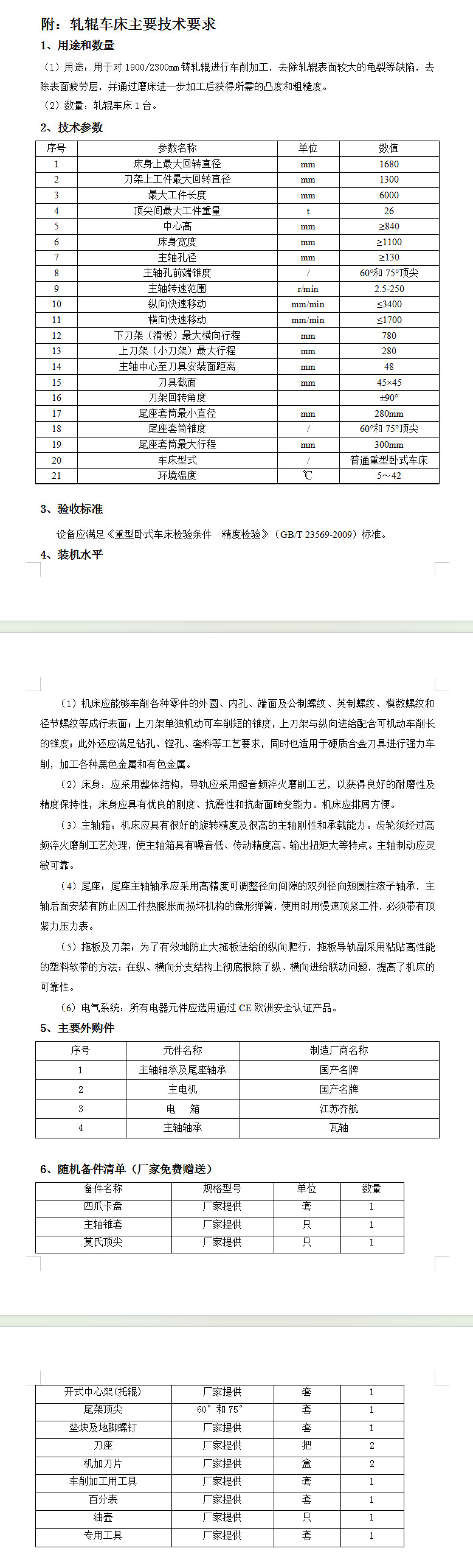 ①、申請人資質(zhì)要求:投標方具備軋輥車床銷售業(yè)績,專業(yè)生產(chǎn)軋輥車床廠家,提供證明材料(合同、發(fā)票)。
