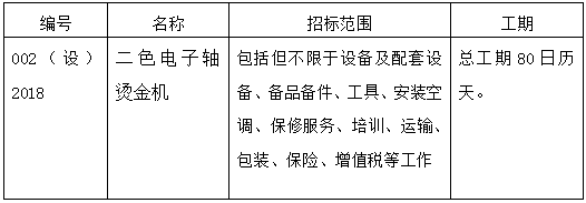 江蘇大亞新型包裝材料有限公司二色電子軸燙金機(jī)設(shè)招標(biāo)公告