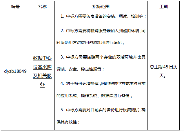 數(shù)據(jù)中心設備采購及相關服務招標公告
