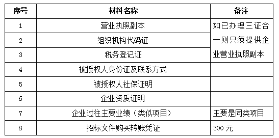 2、 凡有意向參加投標(biāo)者,請?jiān)谏鲜銎陂g內(nèi)按下表提供報(bào)名資料,相關(guān)證明文件的原件如無法提供原件則提供復(fù)印件加蓋公司公章,投標(biāo)人須將上述資料的掃描件發(fā)郵件至招標(biāo)聯(lián)系人處進(jìn)行報(bào)名。