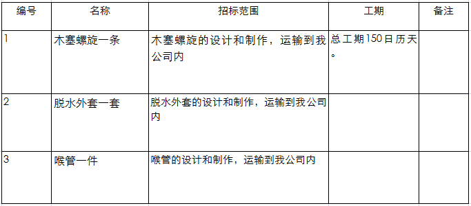 2、 工程規模:提供一套合適肇慶工廠使用的木塞螺旋備件