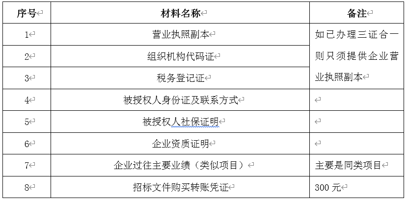 2、 凡有意向參加投標(biāo)者,請?jiān)谏鲜銎陂g內(nèi)按下表提供報(bào)名資料,相關(guān)證明文件的原件如無法提供原件則提供復(fù)印件加蓋公司公章,投標(biāo)人須將上述資料的掃描件發(fā)郵件至招標(biāo)聯(lián)系人處進(jìn)行報(bào)名。