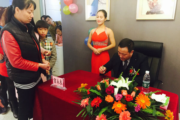 揭幕式之后,宦永良總監在體驗館內進行現場簽售活動,活動當天簽售總計85單,預計活動全款將超過110萬元。兩位85后合伙人更為簽單客戶準備了多重豐厚大禮:全年保價、砸金蛋、抽獎等等,現場客戶可謂滿載而歸。
