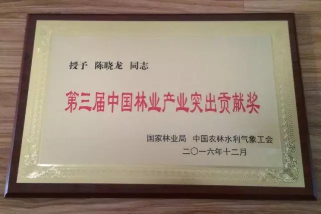 董事局主席、總裁陳曉龍先生榮獲“第三屆中國林業產業突出貢獻獎”(個人獎)