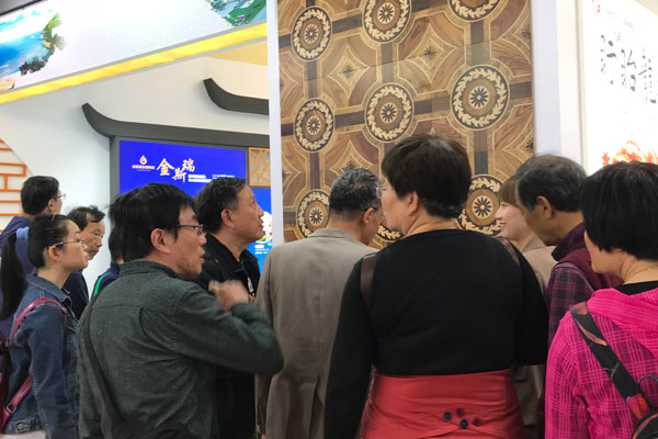 大亞圣象在本屆品博會上主要展示了大亞的纖維板、刨花板,以及圣象地板的部分產(chǎn)品,反響熱烈,吸引了眾多參展者駐足參觀,特別是圣象地板的拼花工藝讓前來參展的觀眾贊不絕口。展臺前被前來參展的人群圍得水泄不通,大亞圣象的工作人員耐心地給大家講解產(chǎn)品知識與公司概況。