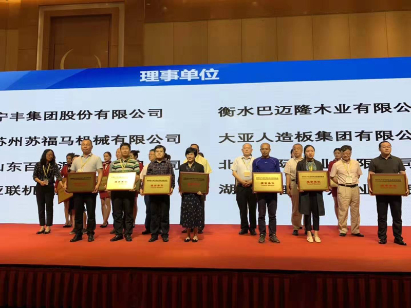 在隨后進行的國際林產(chǎn)品可持續(xù)發(fā)展創(chuàng)新聯(lián)盟成立儀式上,大亞人造板作為理事單位上臺領取榮譽獎牌。