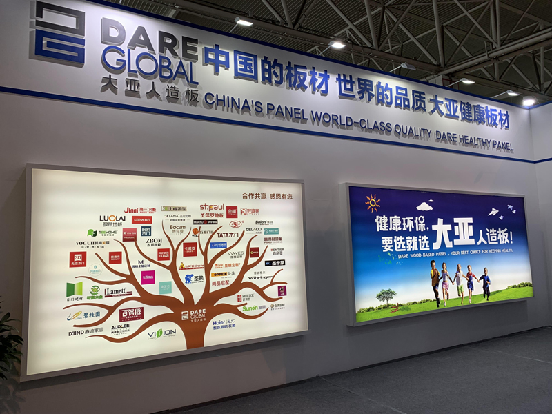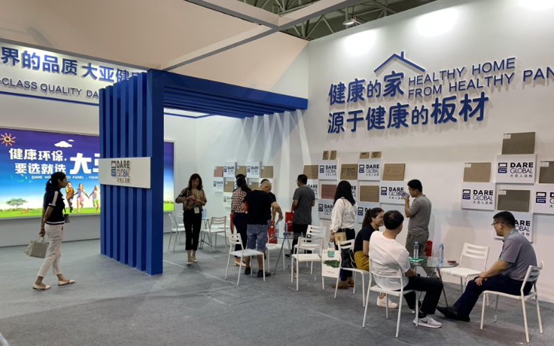 大亞人造板現(xiàn)場展出了無醛刨花板、無醛地板基材、無醛鏤銑板、無醛家具纖維板、高防潮刨花板、防潮地板基材、防潮門板、防霉纖維板、防霉刨花板、低吸漲纖維板、低吸漲刨花板、阻燃纖維板、電子線路墊板、鞋跟板等代表人造板行業(yè)先進技術水平的產(chǎn)品,吸引了眾多客戶前來觀摩洽談。