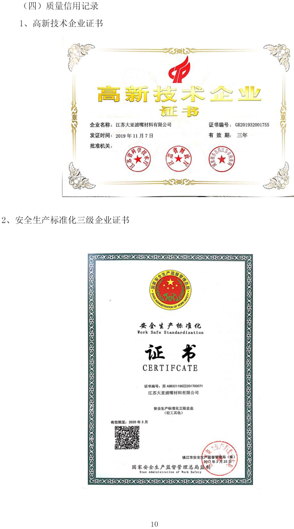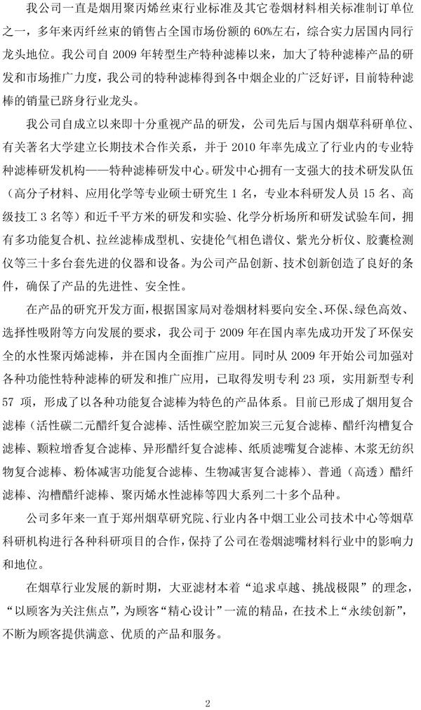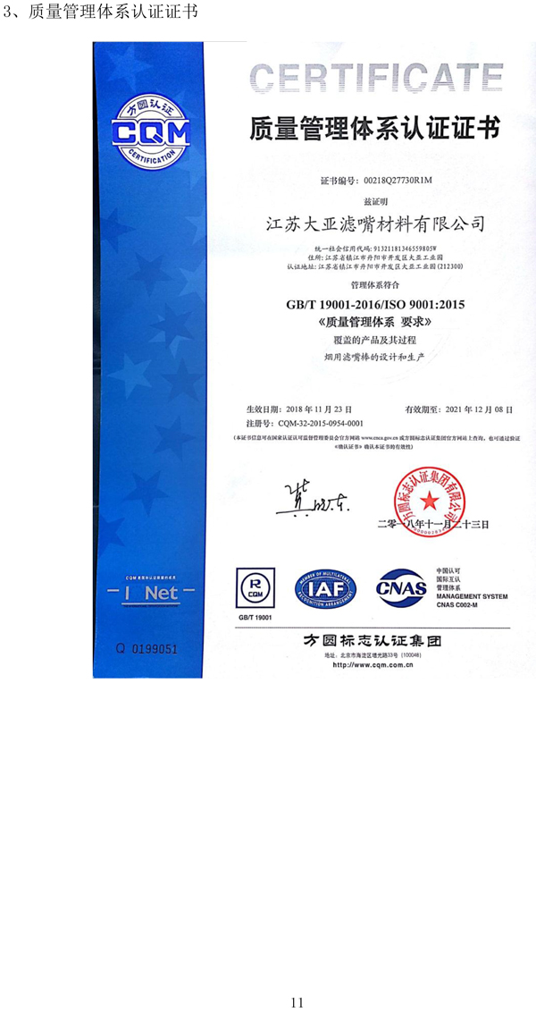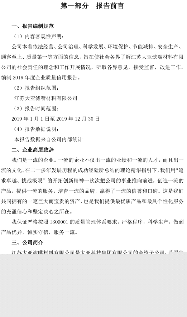 企業質量信用報告——江蘇大亞濾嘴材料有限公司