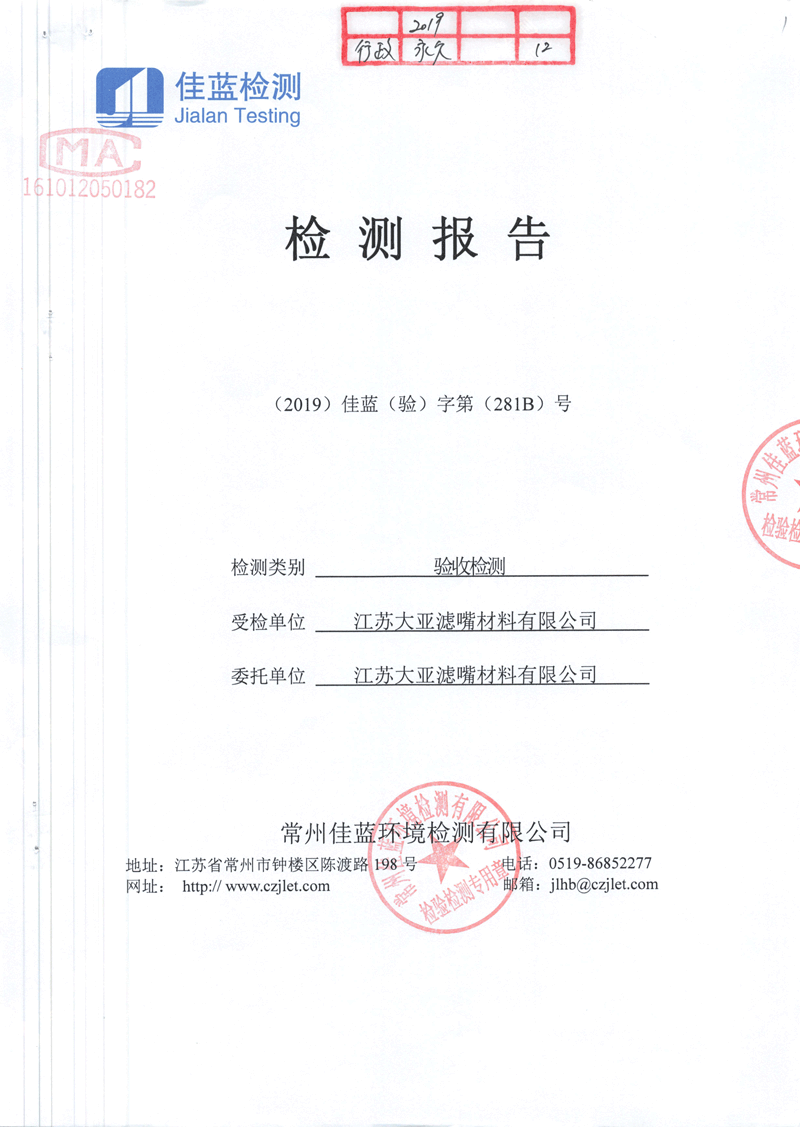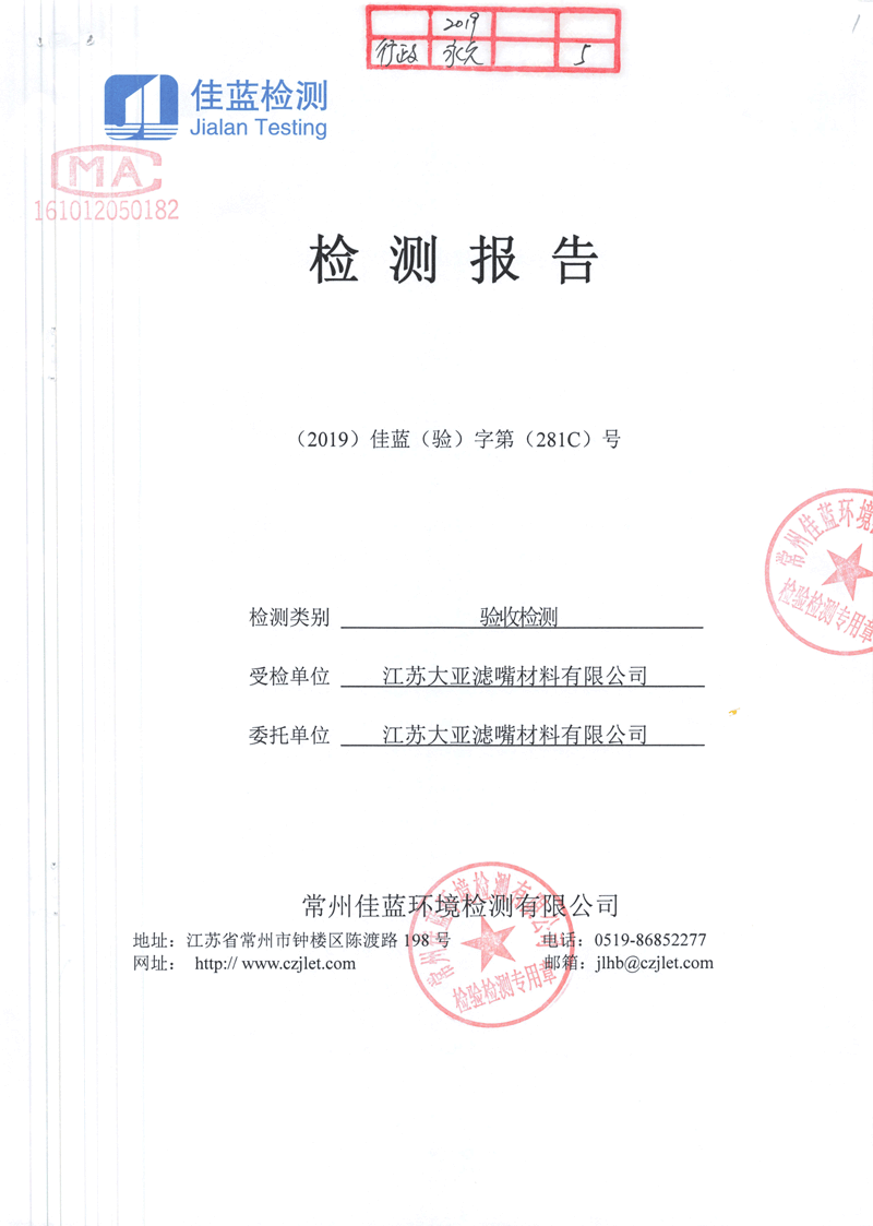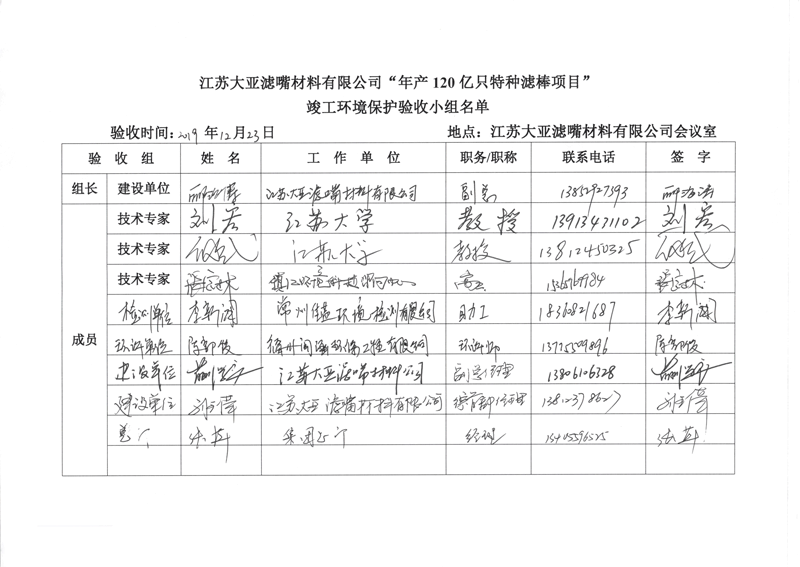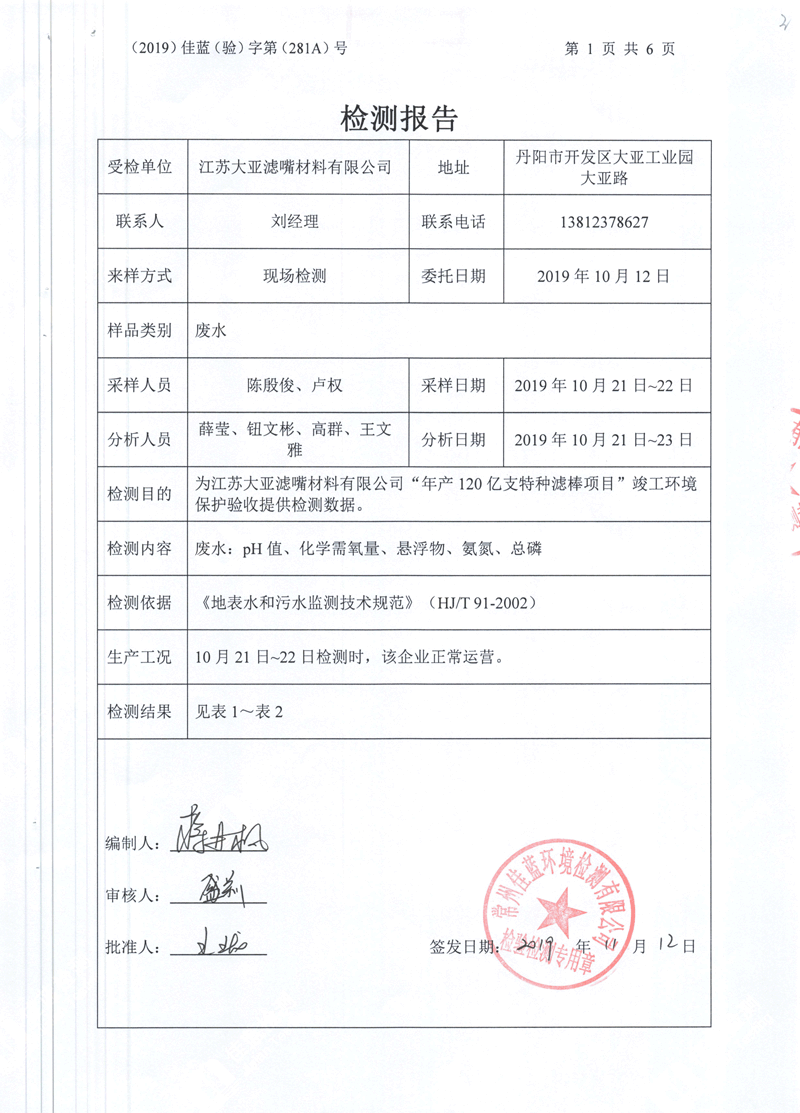 江蘇大亞濾嘴材料有限公司年產(chǎn)120億支特種濾棒項目環(huán)境保護驗收監(jiān)測情況自主公示