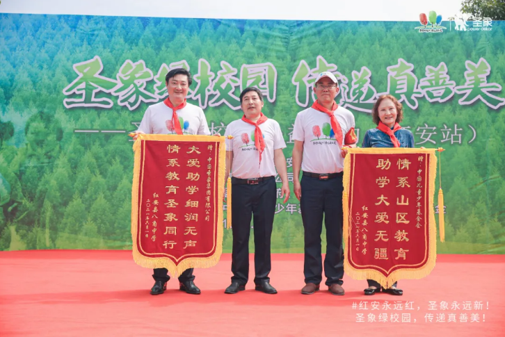 十周年之際,綠校園紅安站對圣象來說更是一種激勵,紅安永遠紅,圣象永遠新!圣象將貫徹新發展理念,企業唯有可持續發展才能積極承擔社會責任!圣象將加快構建新發展格局,從地板的產品提供者到生活空間的方案服務商,構建全新的相互協同、齊頭并進的六大業務線!圣象將以契合時代發展的新動能,攜手愛心人士共同努力,讓更多校園擁有更美好的學習生活環境,把更美好的關愛留給小朋友們,將真善美傳遍祖國大地!用愛承載·美好生活!
