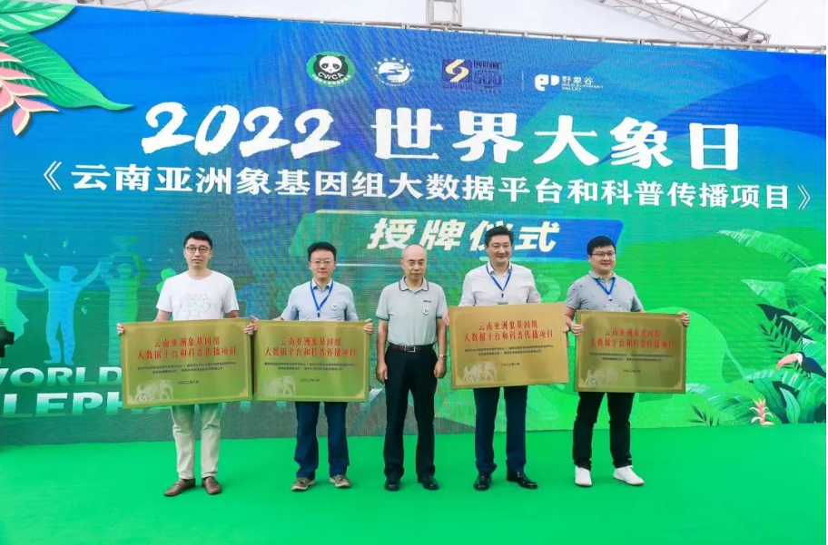 在世界大象日當天的開幕式上,一個亮眼的環節就是”云南亞洲象基因組大數據平臺和科普傳播”項目作為亞洲象科研和保護項目被正式確立,國家林業和草原局動植物保護司張志忠司長向項目科研承擔單位授牌,這標志著該項目的正式啟動。