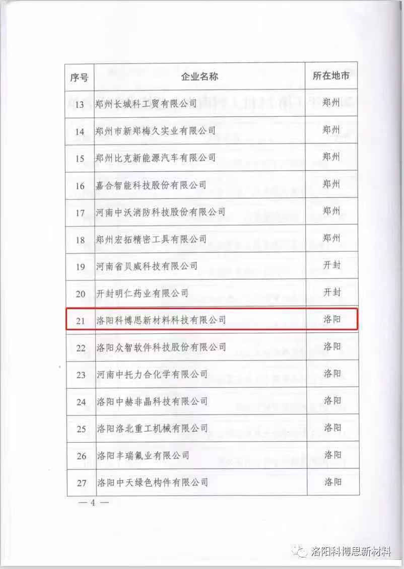 洛陽科博思新材料科技有限公司獲批河南省企業技術中心認定